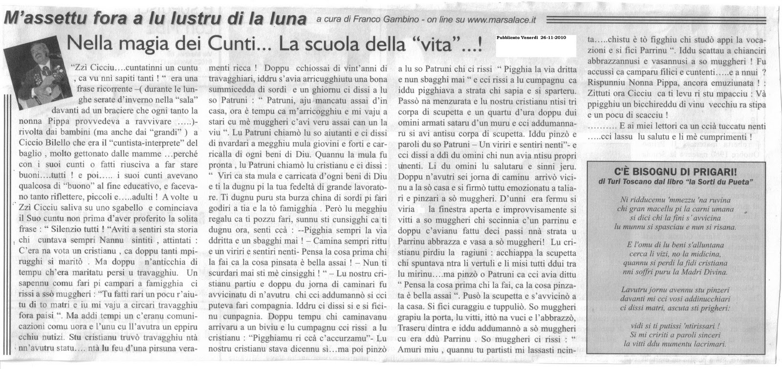 M'assettu fora a lu lustru di la Luna......per " Marsala c'è " del 26-11-2010